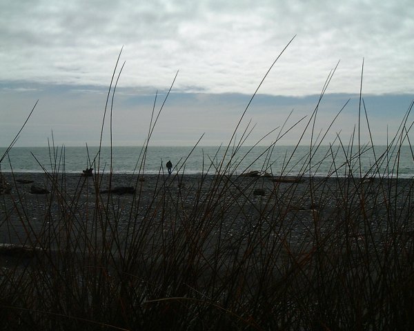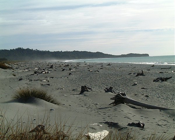 | Gillespies Beach | Dunes and grass and the sea | Andrew in the distance |