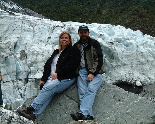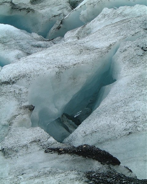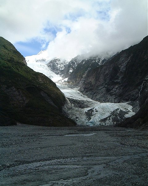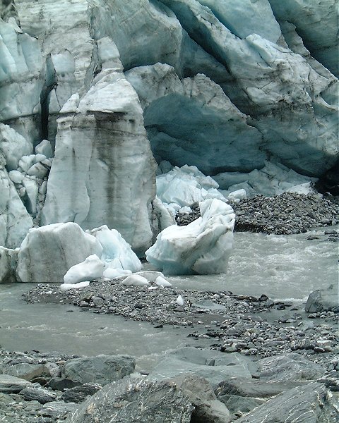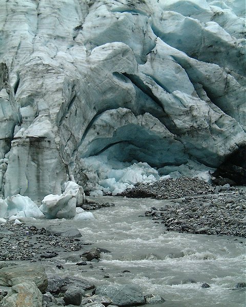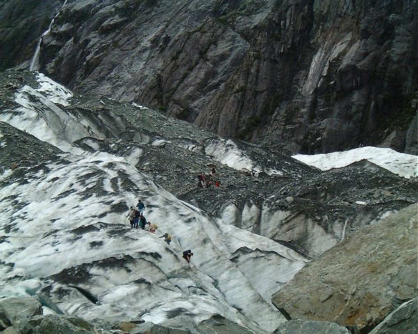 | Looking up the face | A close up view of the ice | Waterfalls in the Franz Josef valley |